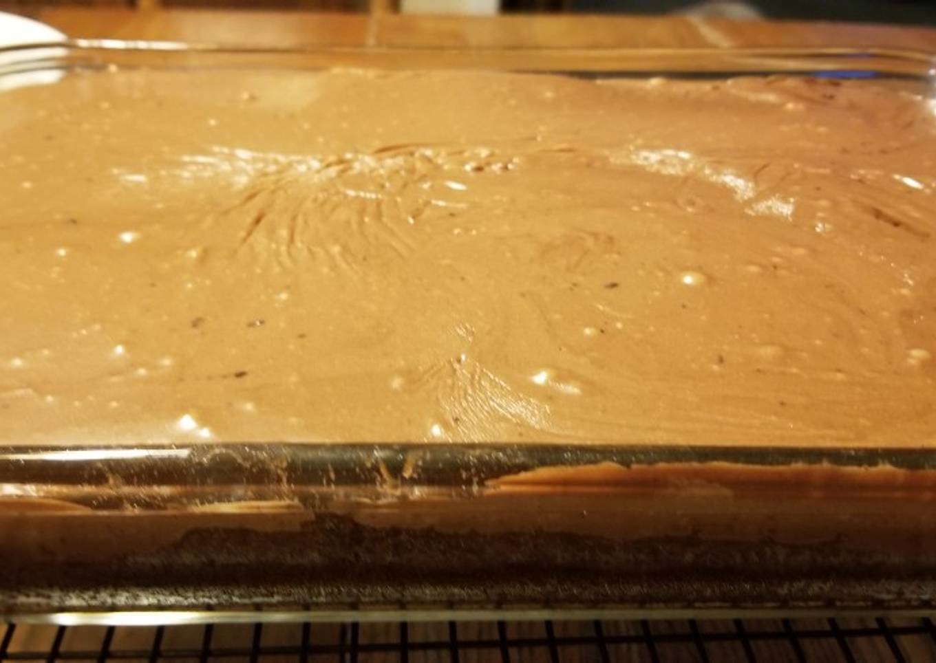 - Frosting: In a saucepan, combine the butter, cocoa, and milk. Heat until the butter melts. Beat in the remaining ingredients and spread on the cake while it is still warm.