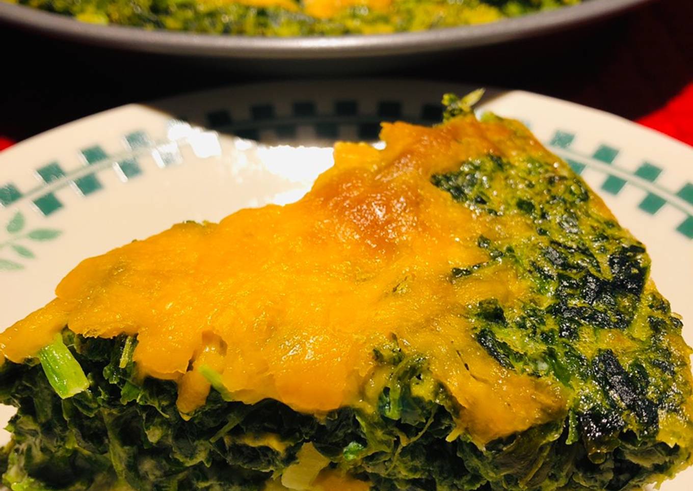 - In a bowl combine: drained spinach, black pepper, salt, crushed red pepper, minced dried onion, ground nutmeg, eggs and heavy cream, whisk well.........