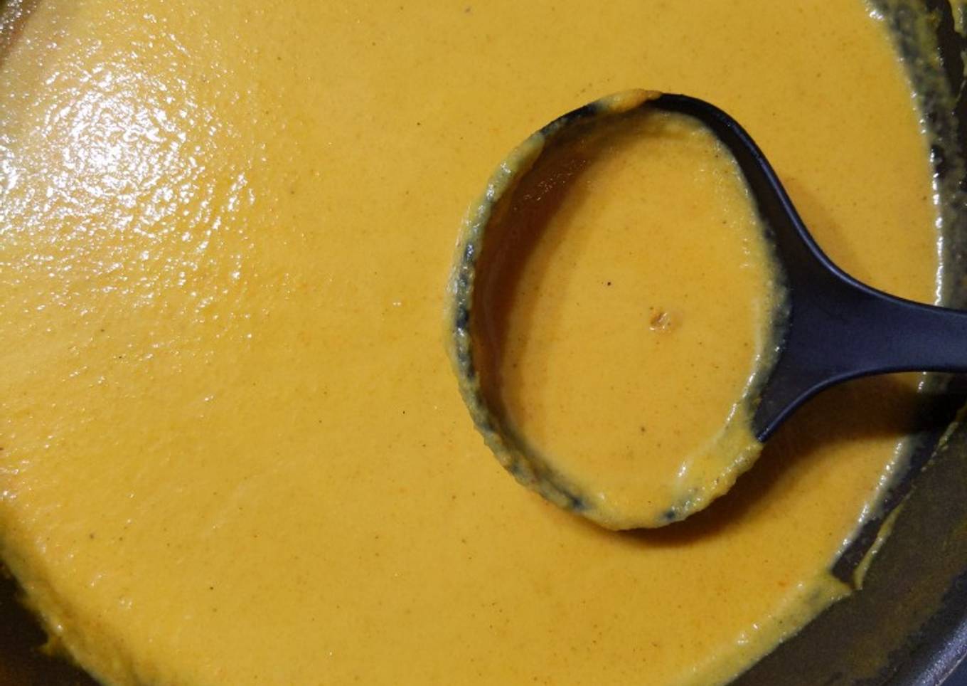- Stir in the heavy cream and pumpkin pie spice. Add more broth if consistency is too thick. Heat through but do not boil. Serve warm.