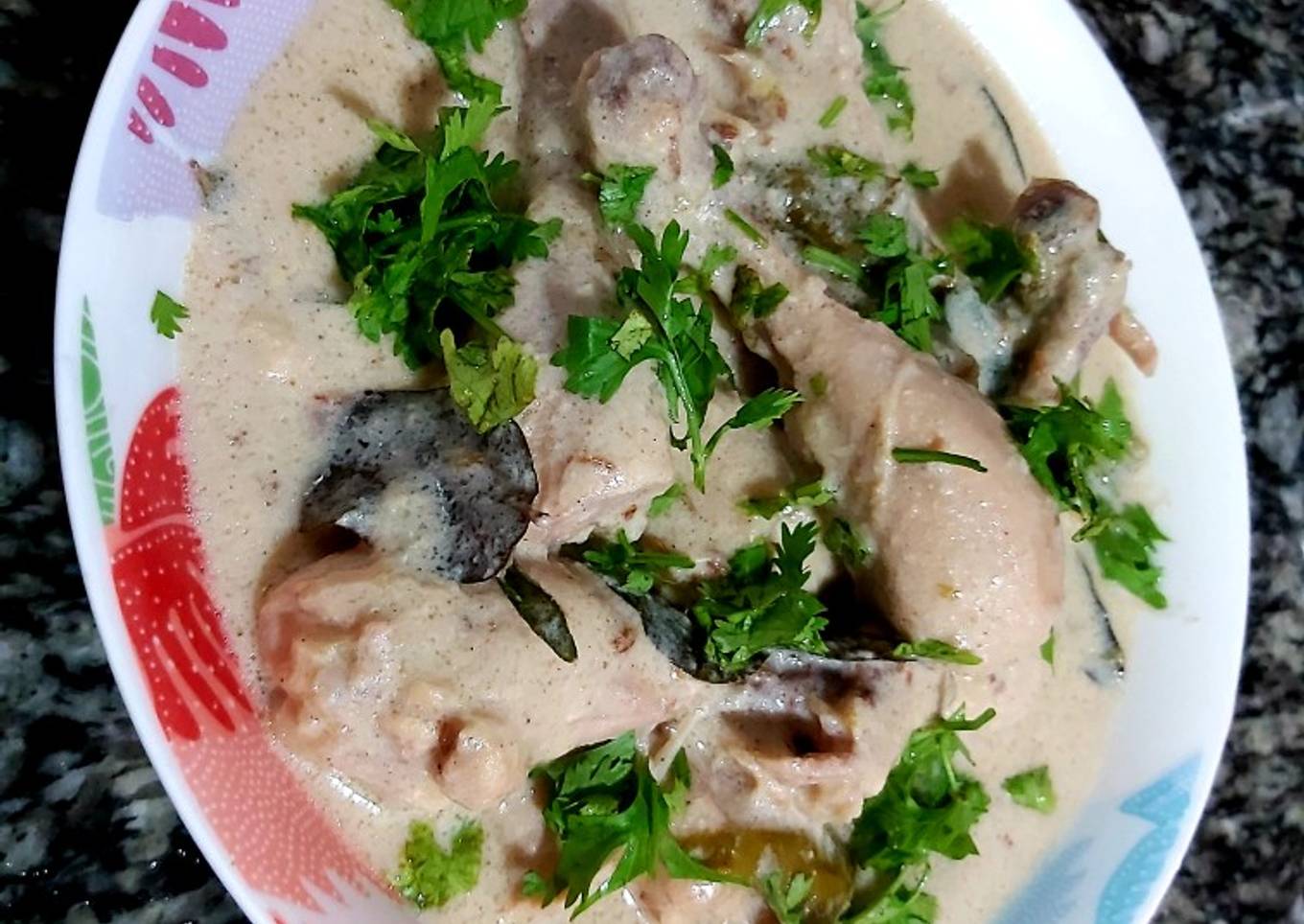 - Marinate chicken in ginger garlic paste..now take cashewnuts,cream and curd and grind to a paste..then take a pan add oil and butter..add jeera,greenchillies and curry leaves to it saute..
