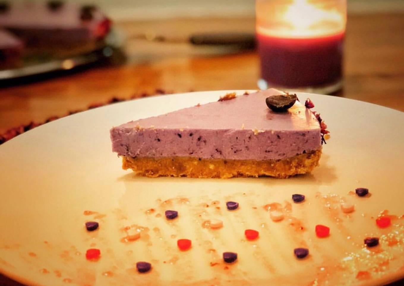 - Garnish with fresh blueberries. Cut into slices and serve.