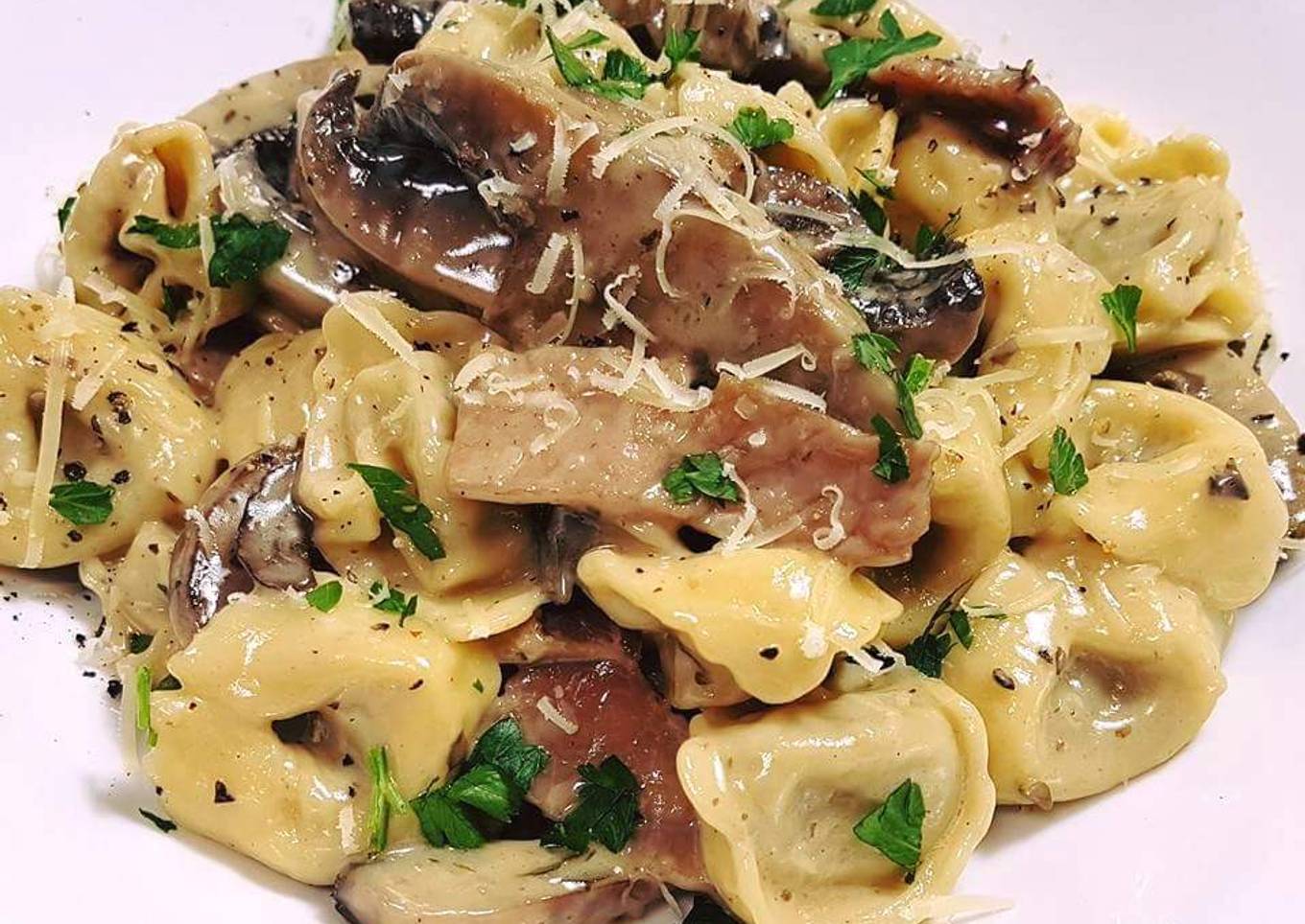 Steps to make to make Veal tortellini with creamy mushroom, bacon sauce