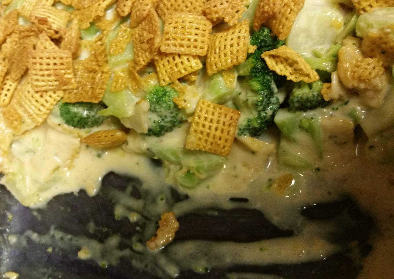 - Bake in 350°F oven for 35 minutes or until bubbly & chex are toasted.