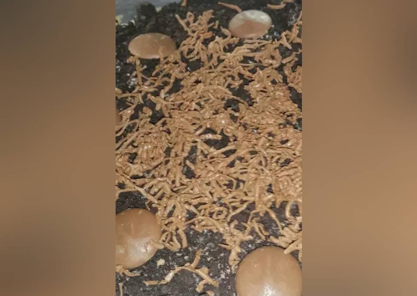 - Crush oreos in a ziplock or plastic bag. (If you don't want the cake to be sweet, you may remove the cream or chocolate filling). Set aside half a cup for topping.