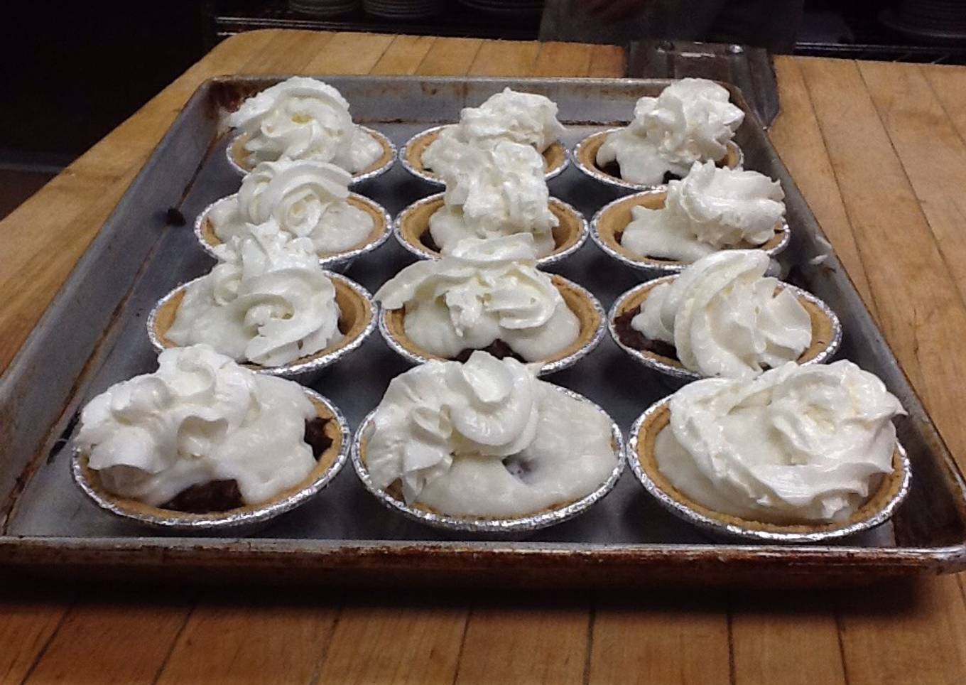 - Garnish each pie with whipped cream.
