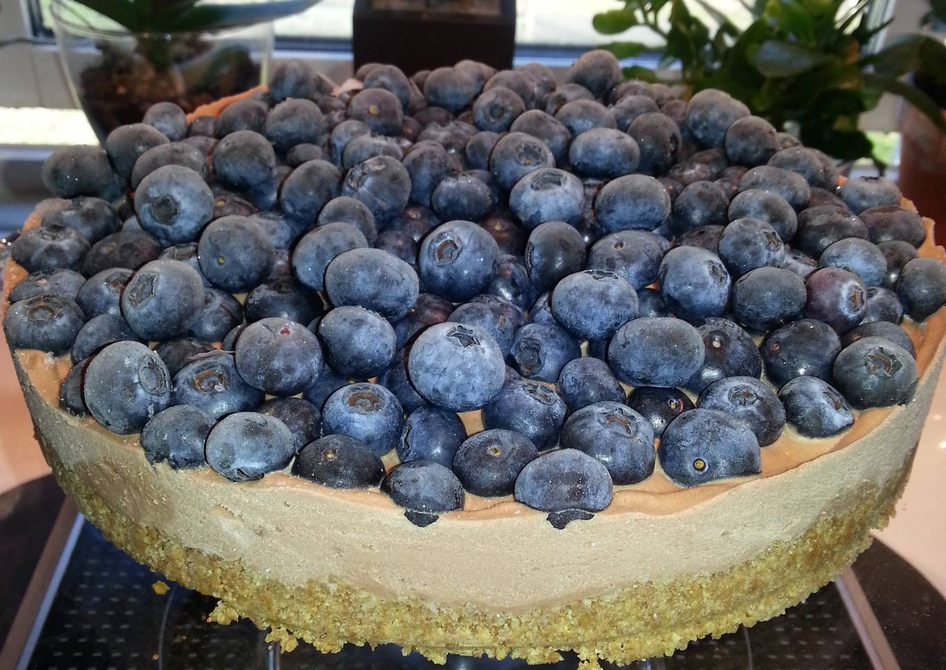 - Pour the filling into the crust. Smooth the top with rubber spatula. Add the blueberry toppings and refrigerate. (2 1/2 to 3 hrs.)
