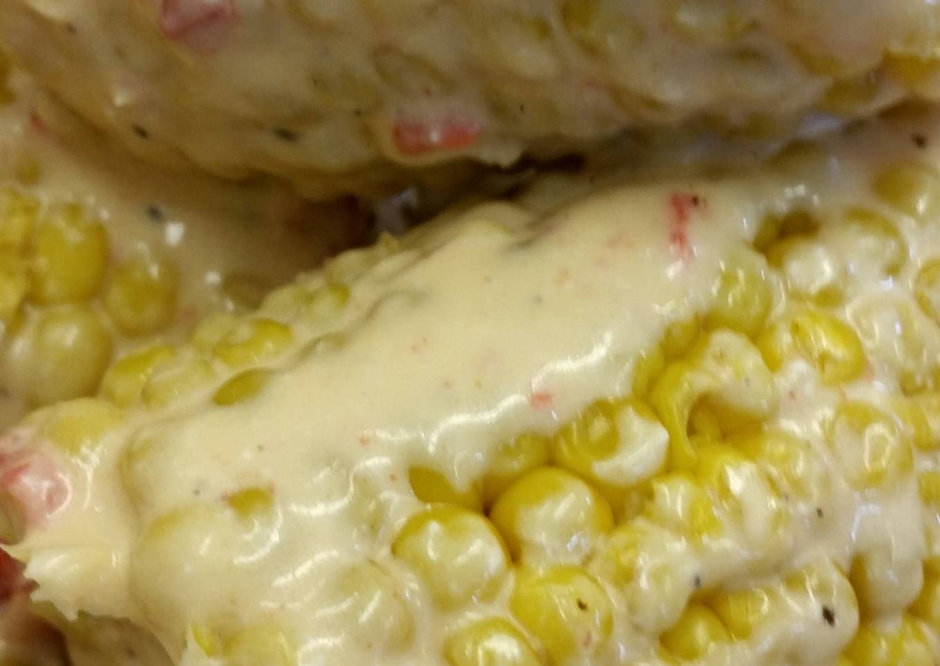 - Drain corn and toss with melted cream cheese in a mixing bowl. Season with salt.